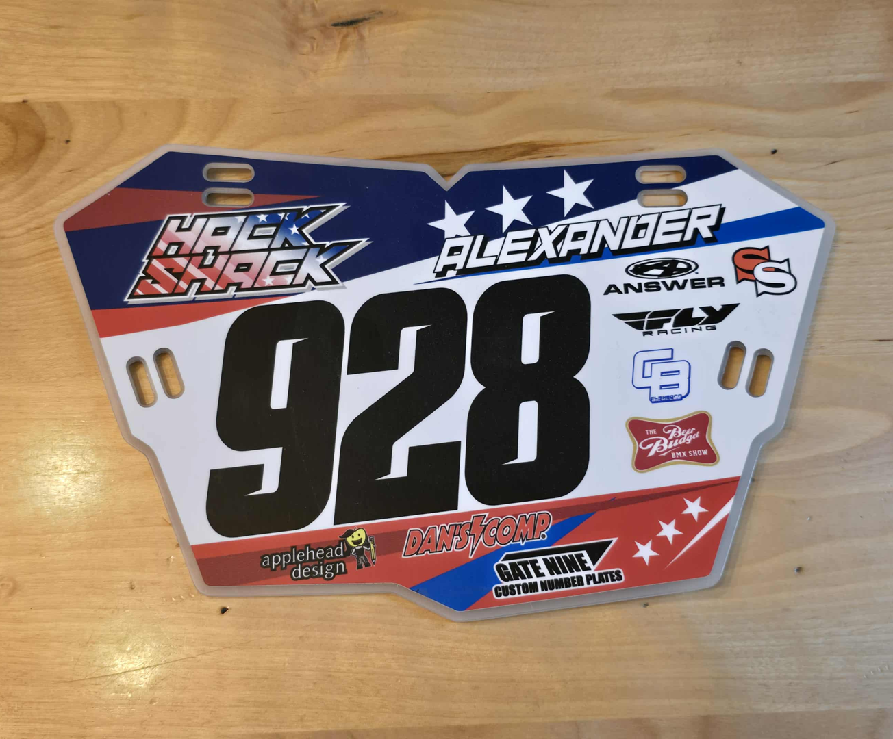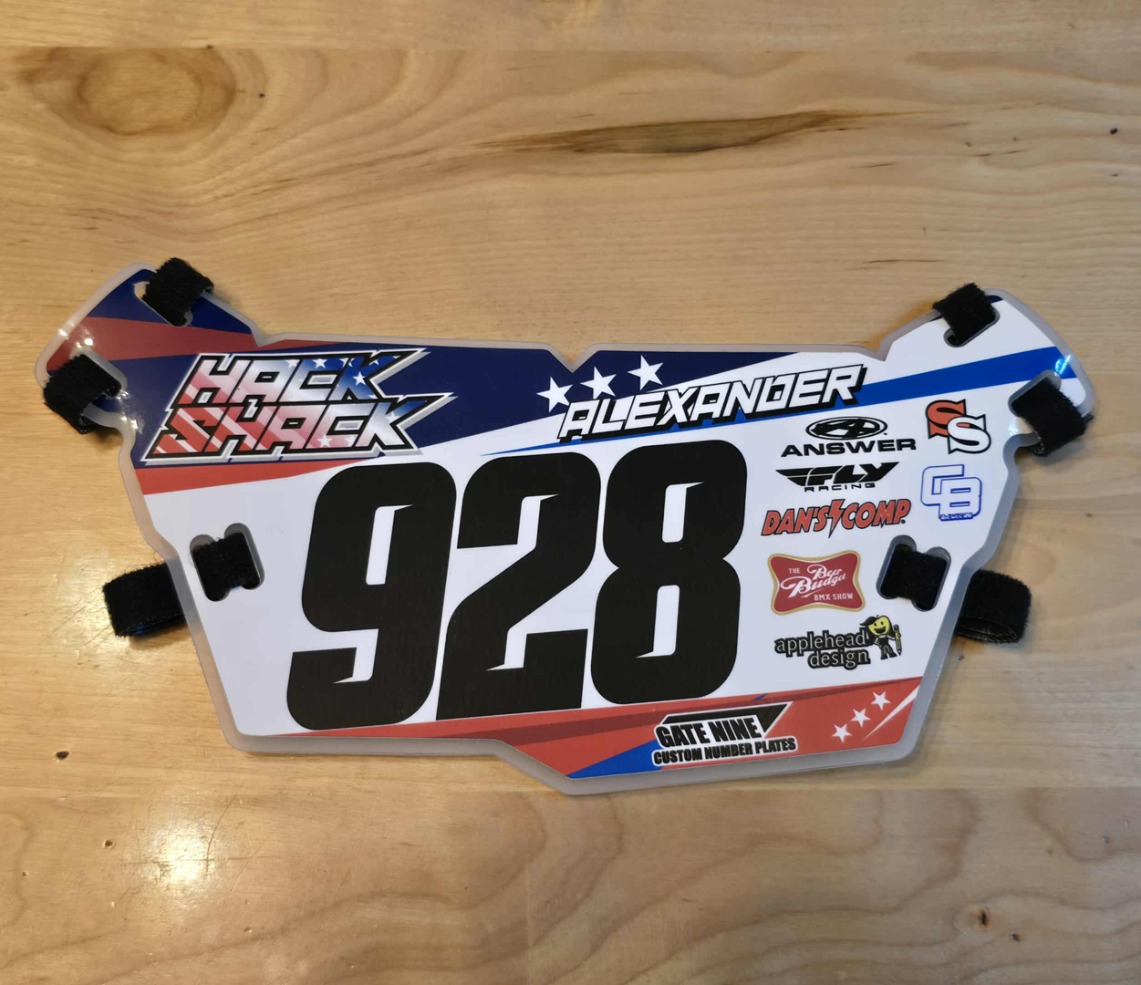 Our full custom plates are one of a kind, custom designed, just for you or your team. We work with you, one on one, until we get the design just right. To get started, let us know your vision and what you would like included: theme, colors, name, nick name, number, and sponsors / components. Have a jersey design already? We can match it!